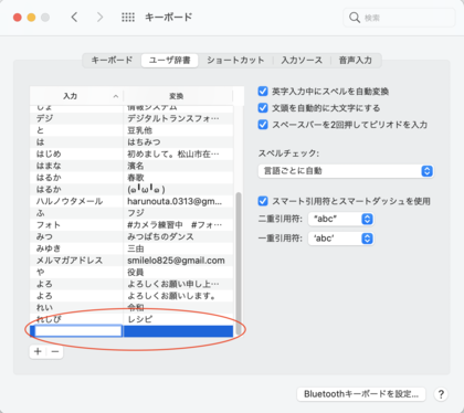 ここでは、Macのユーザー辞書登録をご紹介します。