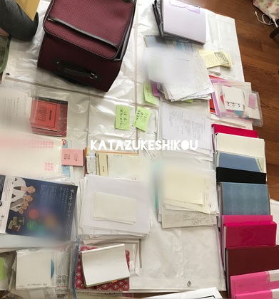 1. 床の上、チェストの引き出し、本棚など各所に無造作にある書類を全部出す
