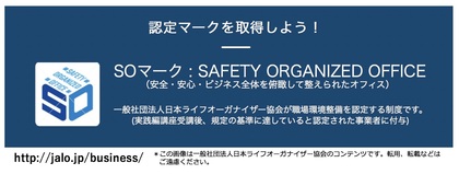 さて、この度、日本ライフオーガナイザー協会から、SOマーク認定を頂きました。