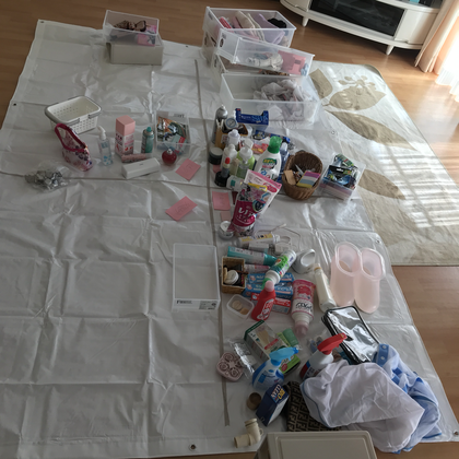 1. 敷物(レジャーシートやバスタオル)を床やテーブルに敷きます。
