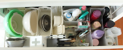 私自身、自宅でモノの住所をどこにするかは、じっくり考えます。自分で片づけたいモノを持って、どこの引き出しなら入れやすいか、片づけやすいかを実際に動いて考えます。それを使う時は、どこから近づいて、どう使うかもシュミレーションします。必ずしも、ベストな場所に収納がないかもしれないけど、AとBの場所ならどっちが良いかな、などと可能性を探る感じです。