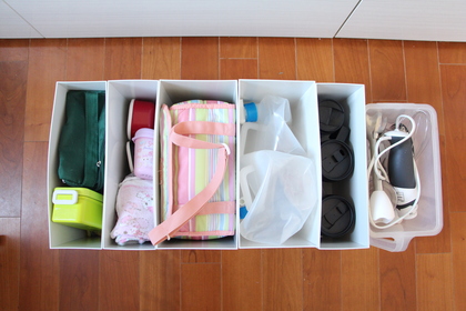 また、色で収納の中身を見分けたい人は、色違いを買うのもOKですが、形は同じシリーズにするとか、統一感を持たせると、よりスッキリします。家中で使う定番収納グッズを決めておくと、どこかで使わなくなったとき、他のスペースで活用することもしやすいです。
