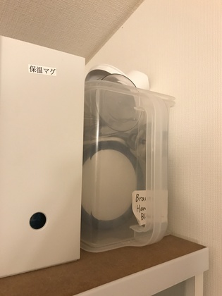 ブレンダー自体が重く、ファイルボックスに入れると下ろしにくいから。さらに、この取っ手付き収納の方が取り出すとき安定するからです。