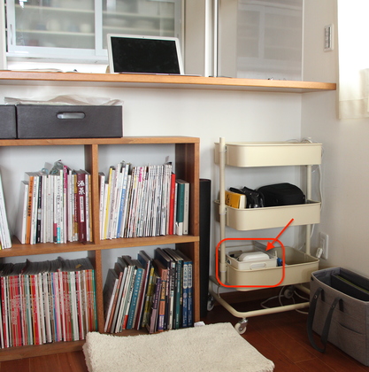 そのワゴンの一番下が、P-TOUCH CUBEの定位置です。