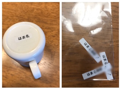 古いラベルライターで作った名前ラベルを貼り付けていましたが、