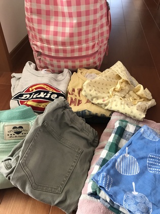 *長袖トレーナー1枚、長袖シャツ2枚、半袖1枚、パンツ2本。