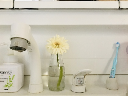 「洗面室に、歯ブラシと歯磨き粉を収納」
