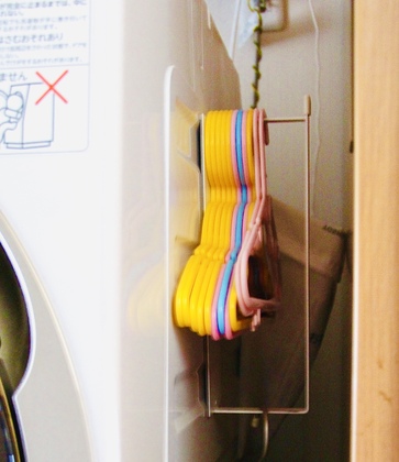 たまに使うピンチハンガー(これもカラフル)をかけています。