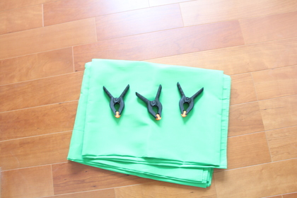 これは、オンライン会議で使うバーチャル背景用のグリーンの布です。
