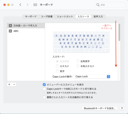 キーボードを開いたら、上に5つ並んだタブから「入力ソース」をクリック、