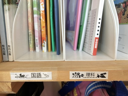 娘の収納には、ラベルライターでかわいいフレームやイラストをつけて