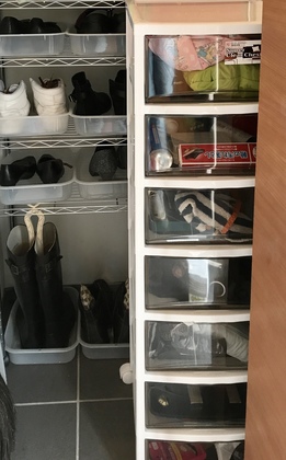 前の家の玄関納戸。透明の引き出しを使っていました。