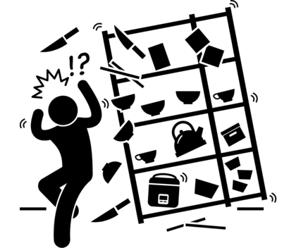倒れた家具で大怪我をしたり、