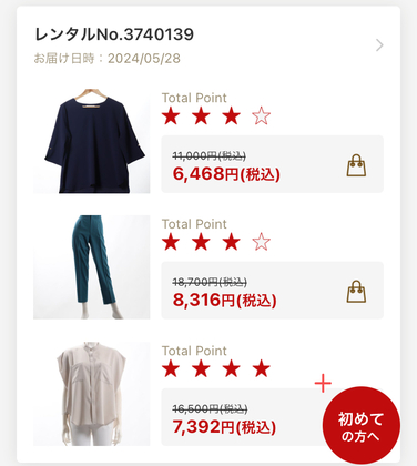 すると、プロが選んだ洋服が毎月3枚(トップス2枚、ボトムス1枚)届く